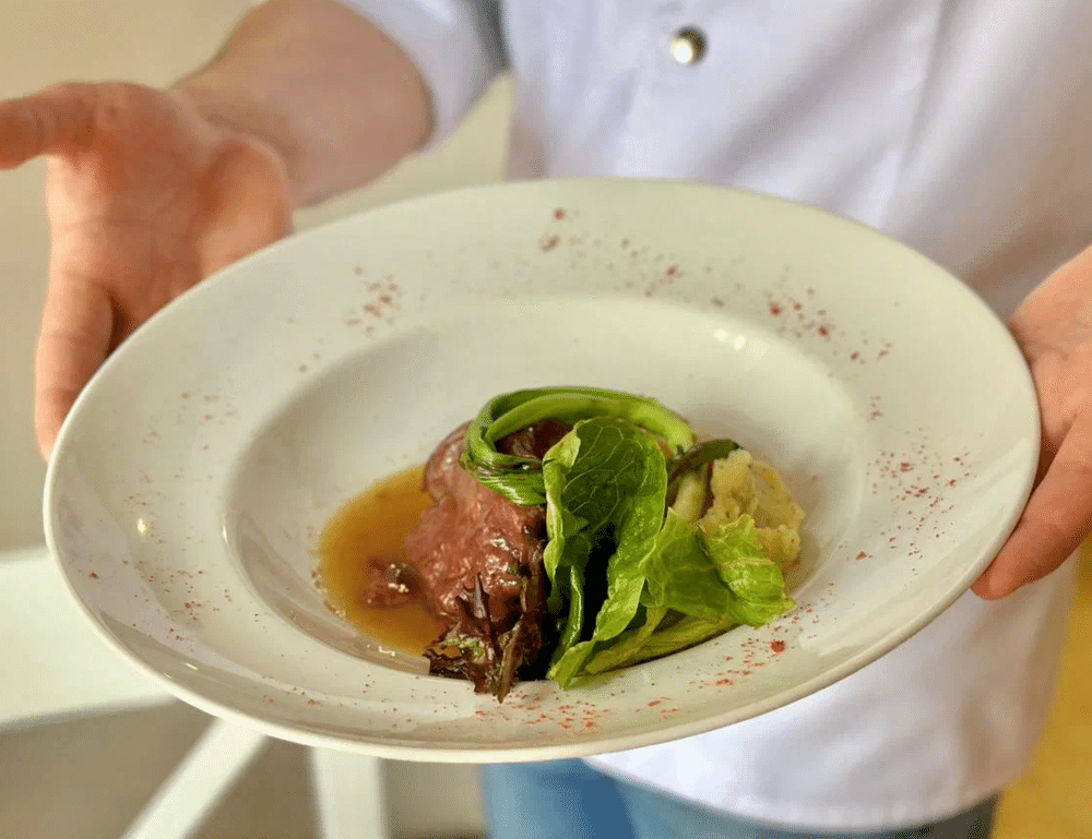 Телячья щечка, трюфель, соус демиглясс, пюре из картофеля