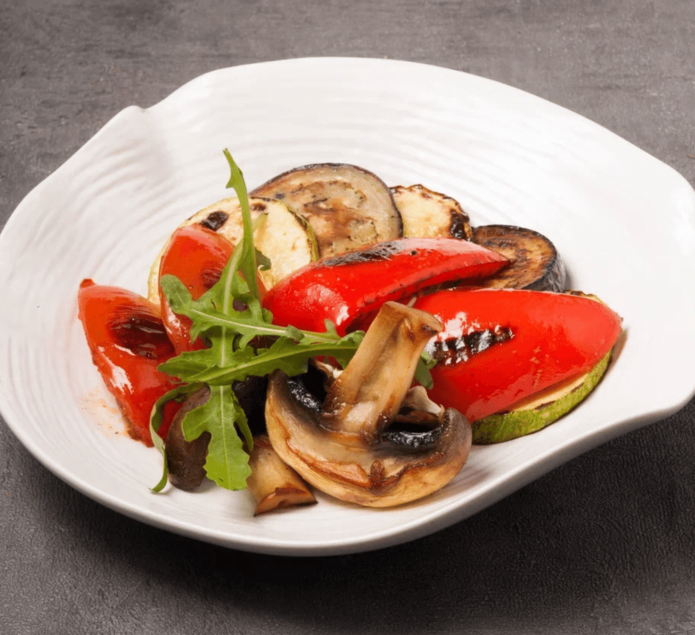 Кабачки, баклажаны, болгарский перец, томаты, шампиньоны